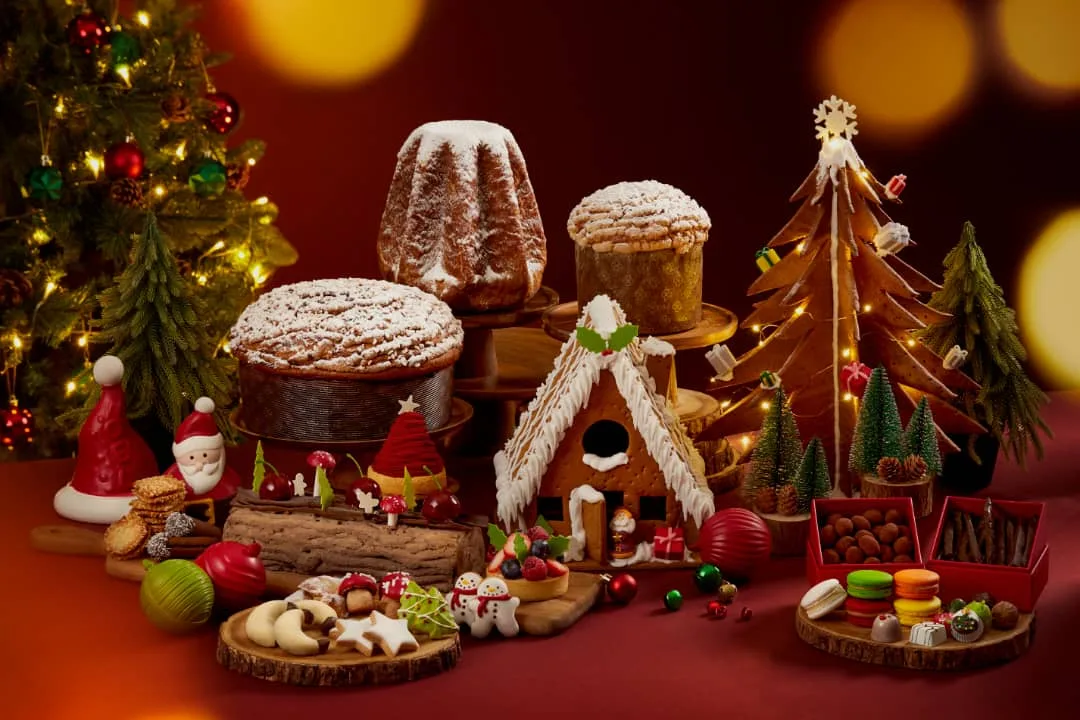 Festive hampers, log cakes, gingerbread houses, and takeaway roasts are available at The Mandarin Cake Shop.