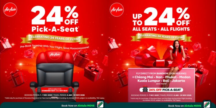 AirAsia is proudly celebrating its 24th birthday with a special Birthday Sale, offering up to 24% off base fares on all seats across all flights. From humble beginnings with just two aircraft to becoming one of the world’s most recognized low-cost carriers, AirAsia continues to redefine value, convenience and choice for travelers throughout the region.