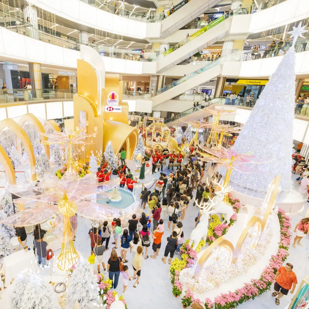 1 Utama transforms into a dreamy ice-inspired world with shimmering crystal canopies, glowing sculptures, and a Pegasus-drawn golden carriage perfect for fairy-tale photography. The Crystal Sanctum, a 35-foot illuminated centerpiece at LG Oval, offers stunning winter visuals, while Centre Court’s Whispering Winter Haven adds mist, water feature and Insta-worthy shots.