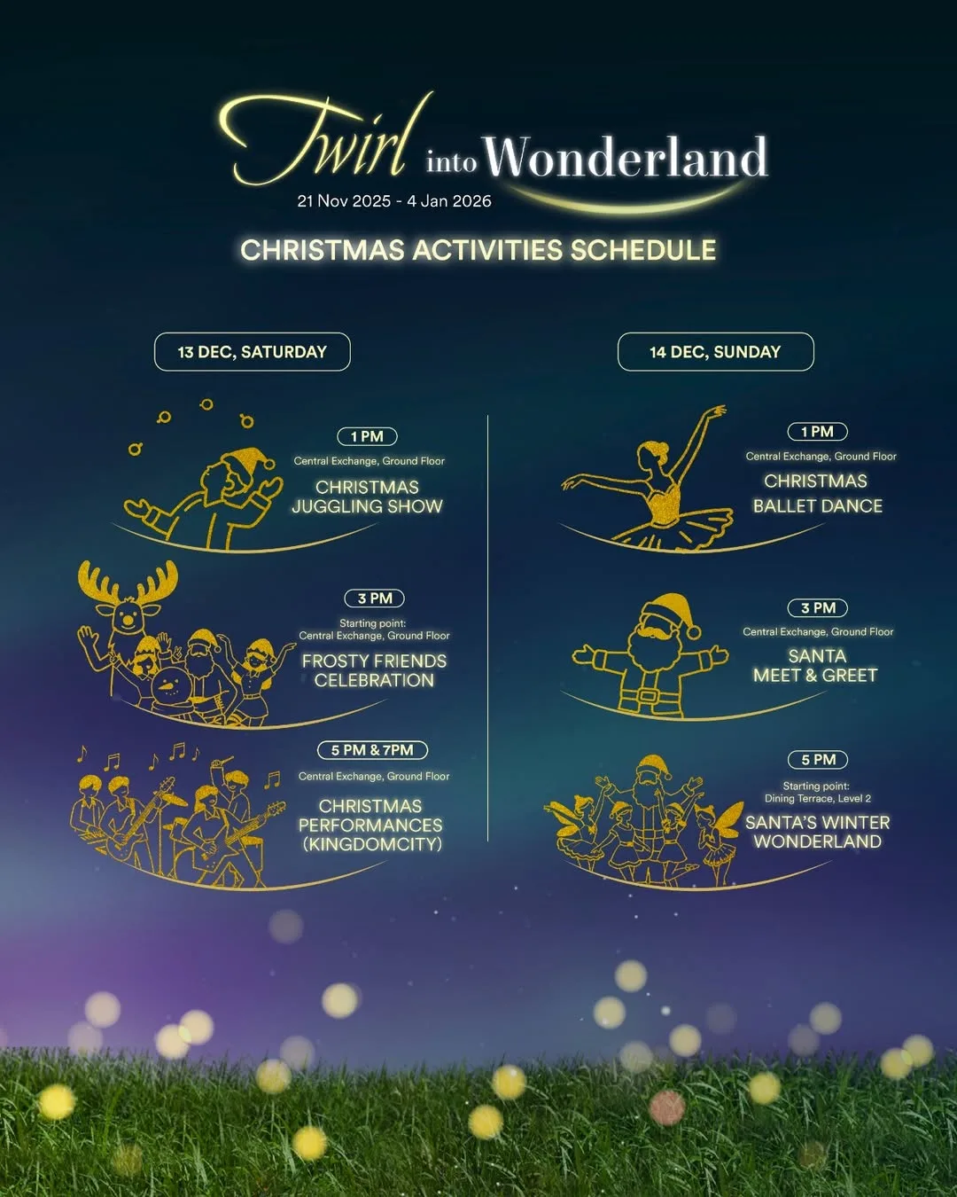Suria KLCC delivers one of Malaysia’s most iconic festive spectacles with its towering 80-foot Christms tree framed by the Petronas Twin Towers, inside, visitors can enjoy the Interactive Music Box that syncs lights to classic Christmas tunes, a scented Mirror Room by Lancome, festive workshops and Santa meet and greet.