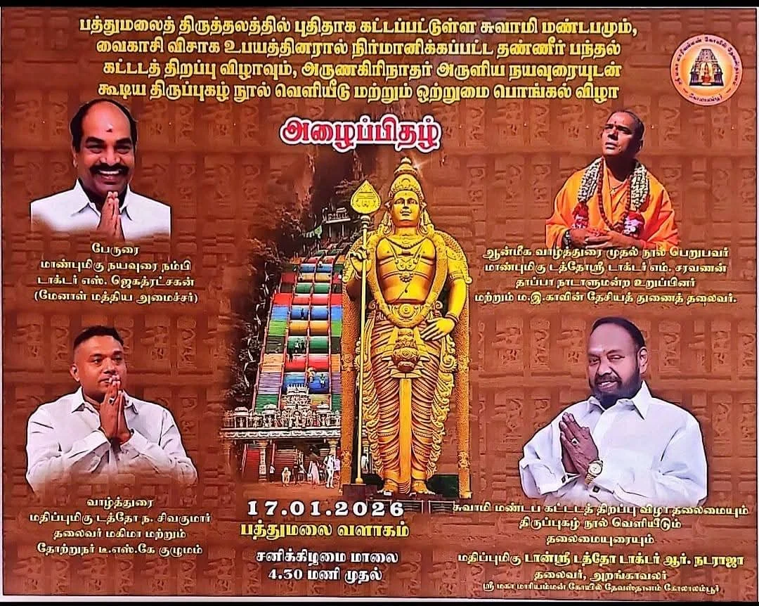 This inauguration will be held in conjunction with the National Ponggal Celebration on January 17 at Batu Caves. During the ceremony, the newly built Swami Hall within the temple premises will be formally declared open to devotees.