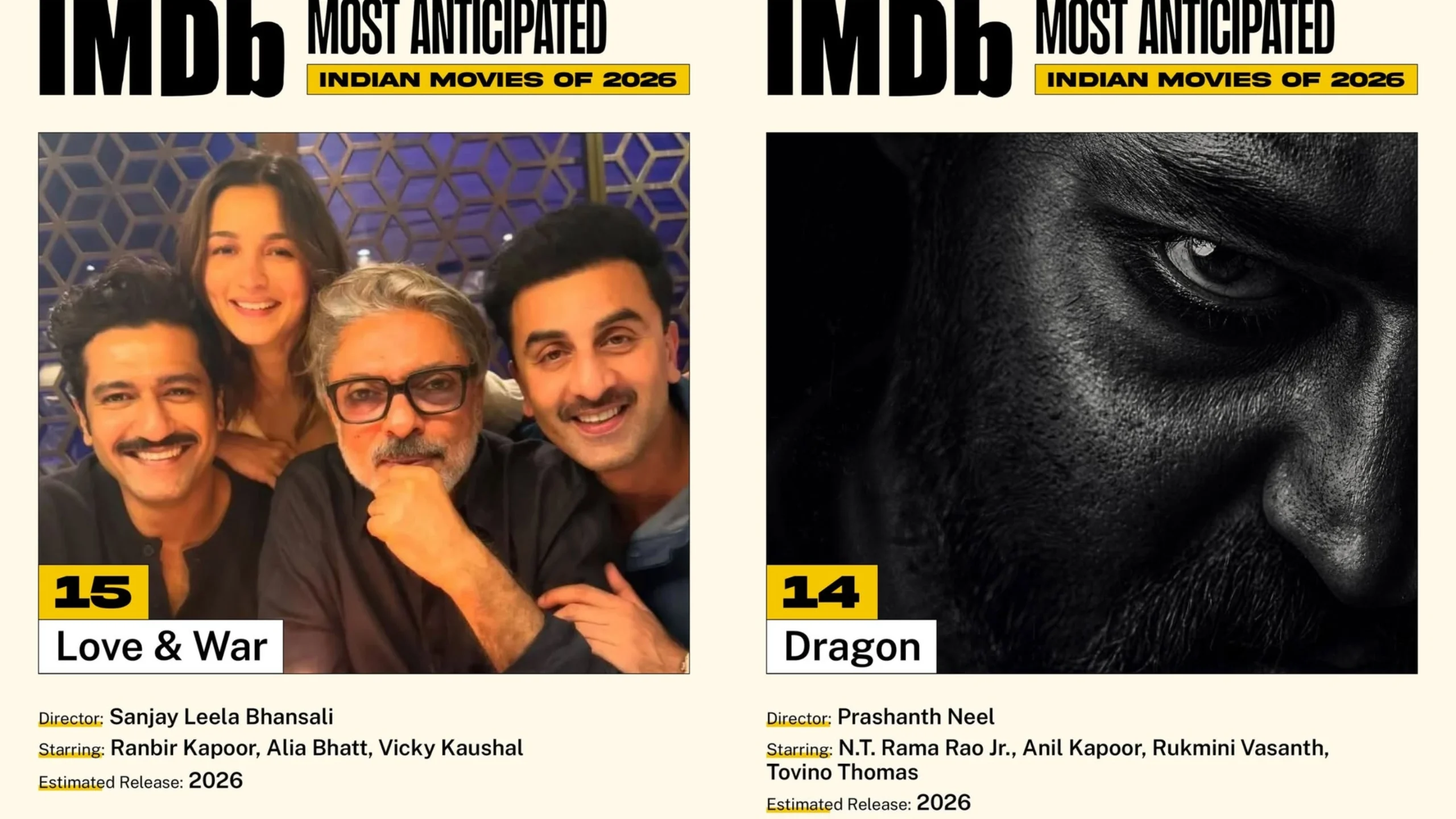 Together, IMDb’s Top 20 most anticipated Indian films of 2026 highlight a clear trend, audiences are gravitating toward ambitious storytelling, cross-industry collaboration and theatrical spectacle. As release dates draw closer, 2026 is shaping up to be one of the most significant years for Indian cinema in recent memory.