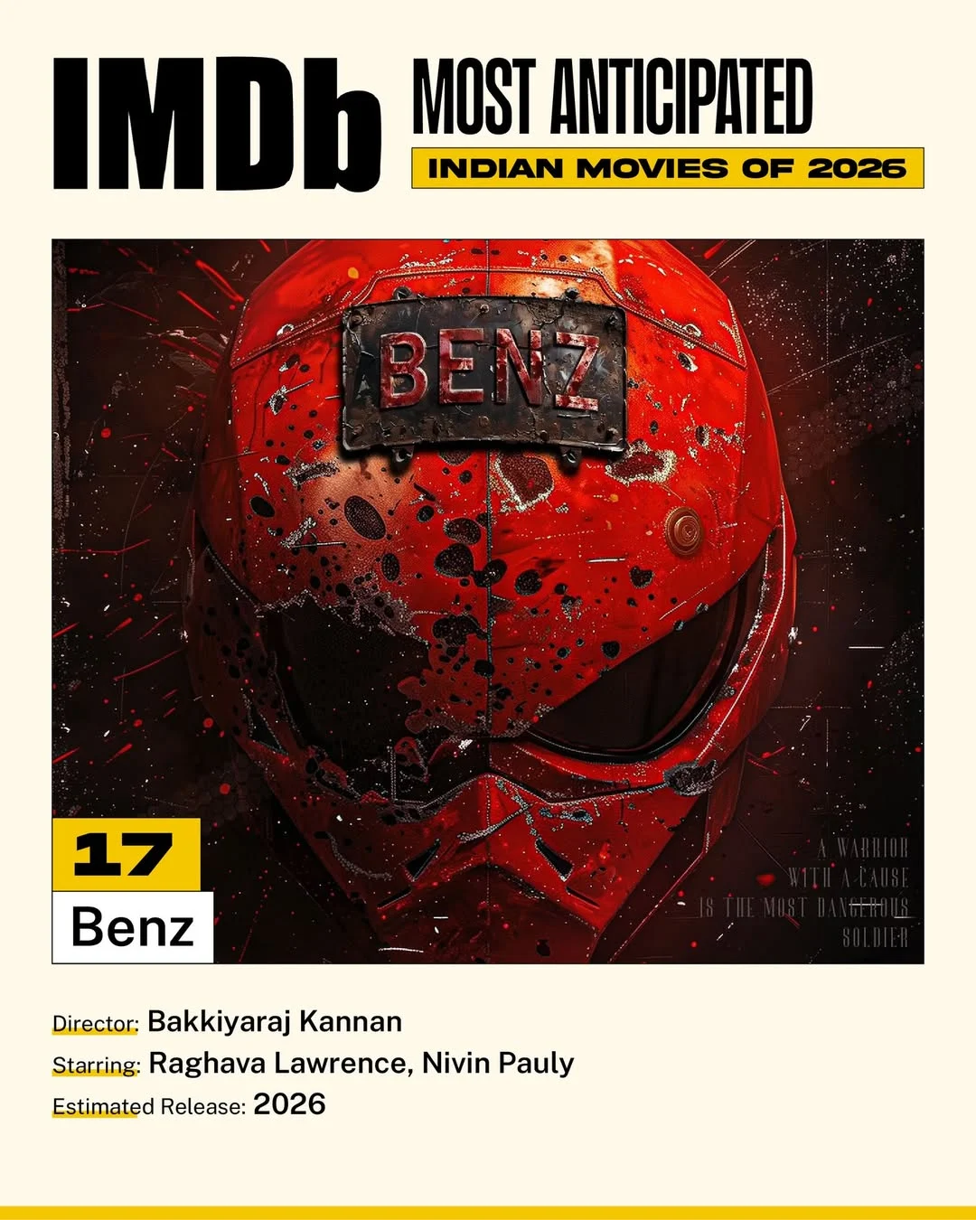 Benz (No.17), starring Raghava Lawrence and Nivin Pauly, stands out for it’s unexpected casting combination, hinting at a blend of mass cinema and performance-led storytelling.