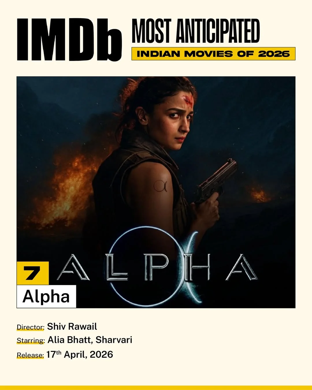 The list also features large-scale franchise and patriotic releases such as Battle of Galwan (No.6), led by Salman Khan, and YRF’s spy-universe expansion Alpha (No.7), starring Alia Bhatt and Sharvari, marking a significant moment for female led-action films.