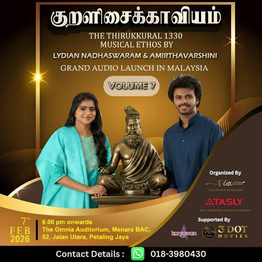 Adding further significance to the global journey of The Thirukkural 1330: Musical Ethos is it’s Grand Audio Launch in Malaysia. Scheduled to take place on 7th February 2026 at The Omnia Auditorium, Menara BAC, Petaling Jaya, the Malaysia launch marks an important milestone in the project’s international rollout. Malaysia takes pride in being part of this historic endeavour, with 18 singers from Malaysia contributing to the album, and 1 autistic star singer from Project Jananam, an initiative led by Thila Lakshman. The event is organised by T-Lax Avenue (M) Sdn Bhd in collaboration with Tasly Malaysia, with Malaysia officially joining after other countries that have hosted launches for this monumental work. The launch is open to the public, allowing audiences to be part of this cultural celebration, bringing together music, inclusivity, and the timeless wisdom of Thiruvalluvar under one roof.