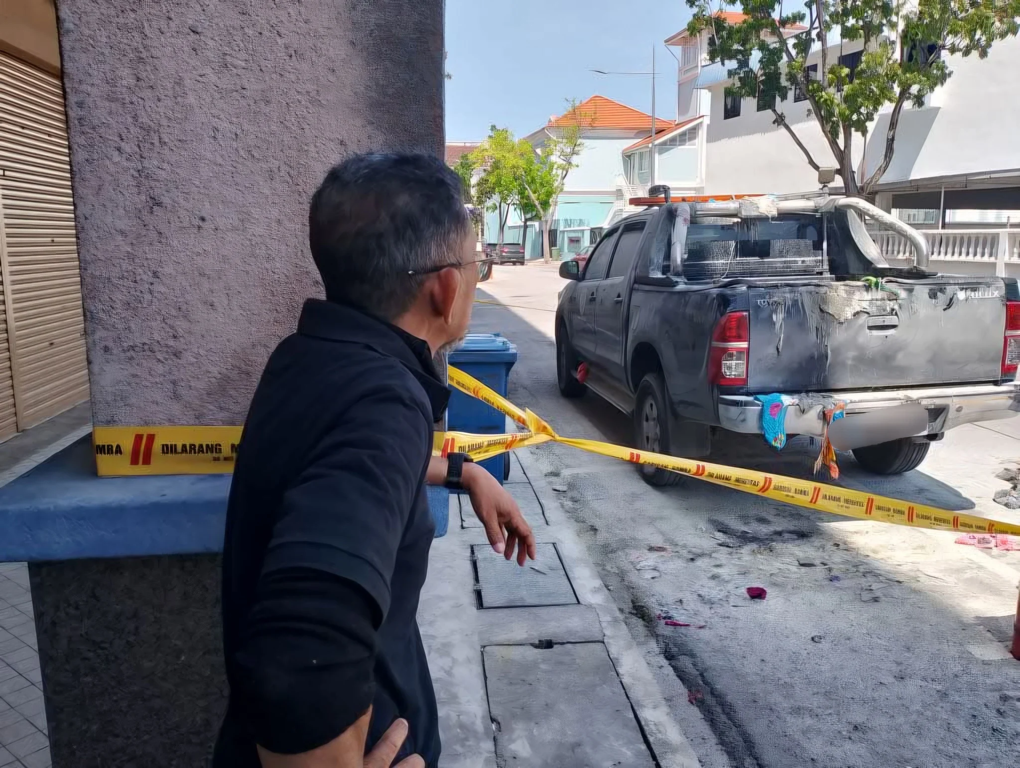 While attempting to release the gas from the balloons in front of the office and away from the public, the balloons unexpectedly exploded and caught fire. The blast also damaged the rear of and MBPP vehicle and some of the confiscated items.