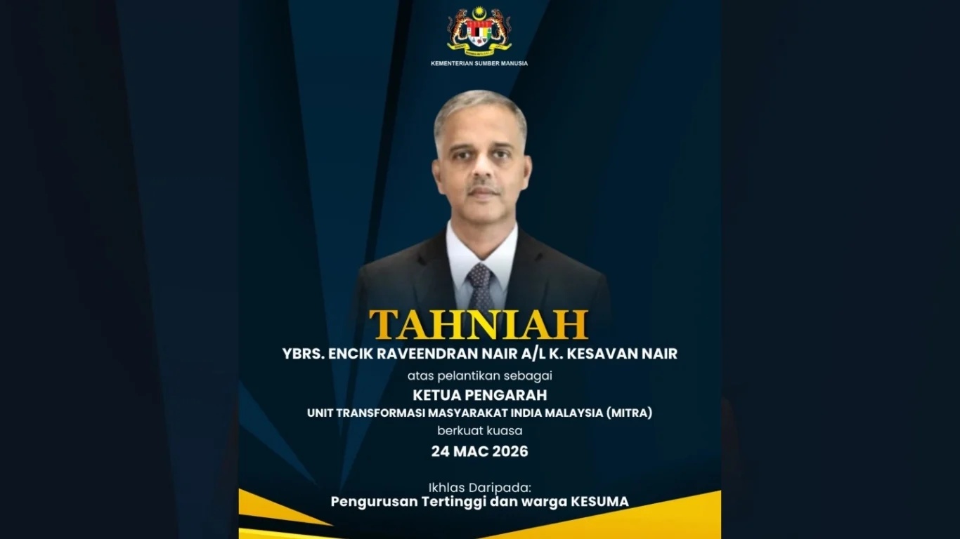 Raveendran Nair A/L K. Kesavan Nair has been appointed as the new Director-General of the Malaysian Indian Transformation Unit (MITRA), commencing on 24 March 2026. This significant announcement was made by the Ministry of Human Resources, which took to its official social media platforms to publicly congratulate Raveendran Nair on his new role.