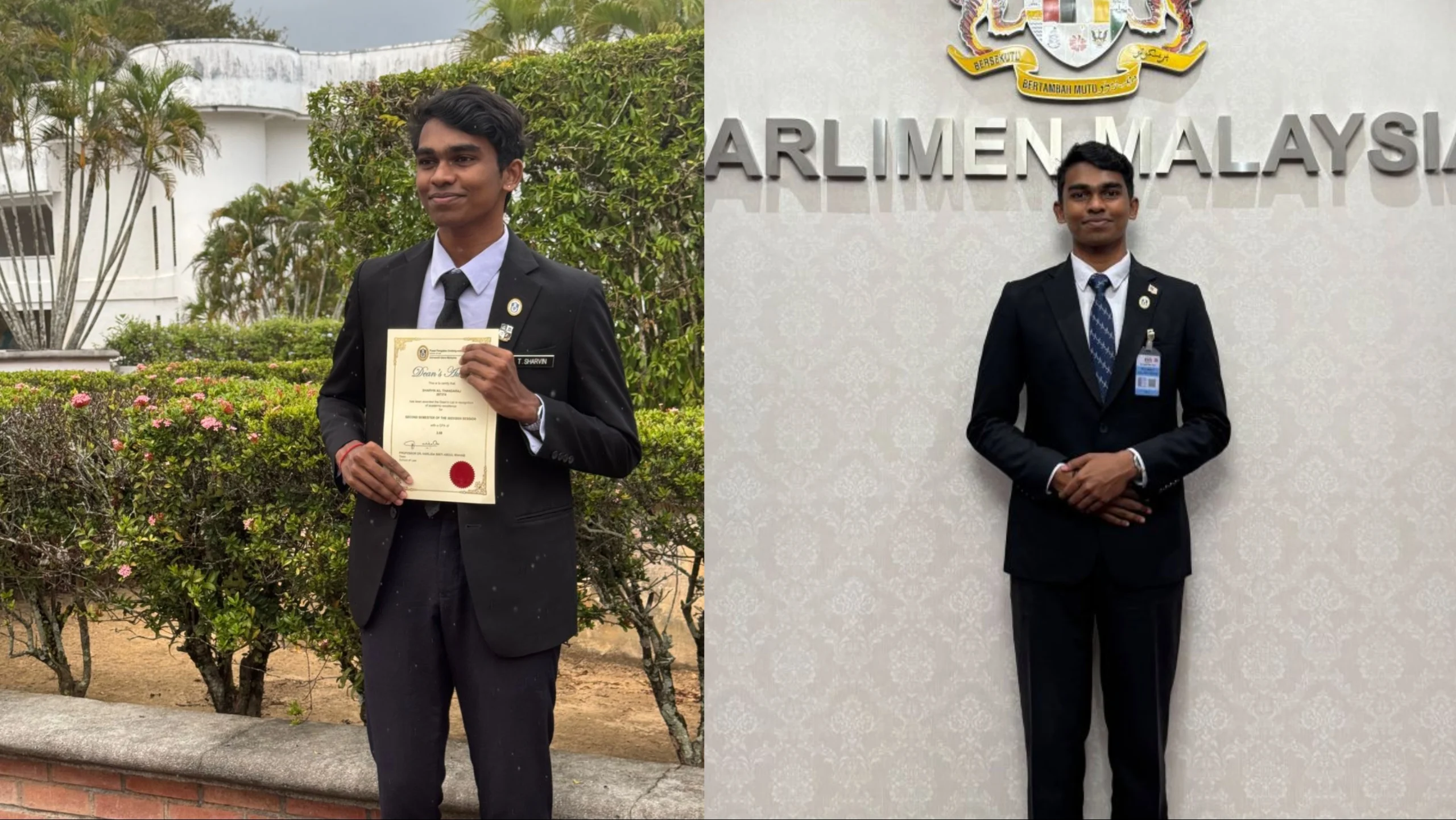 Sharvin Thangaraj, from Kampung Tun Sambanthan in Ayer Tawar, Perak, is a law student in Universiti Utara Malaysia (UUM).