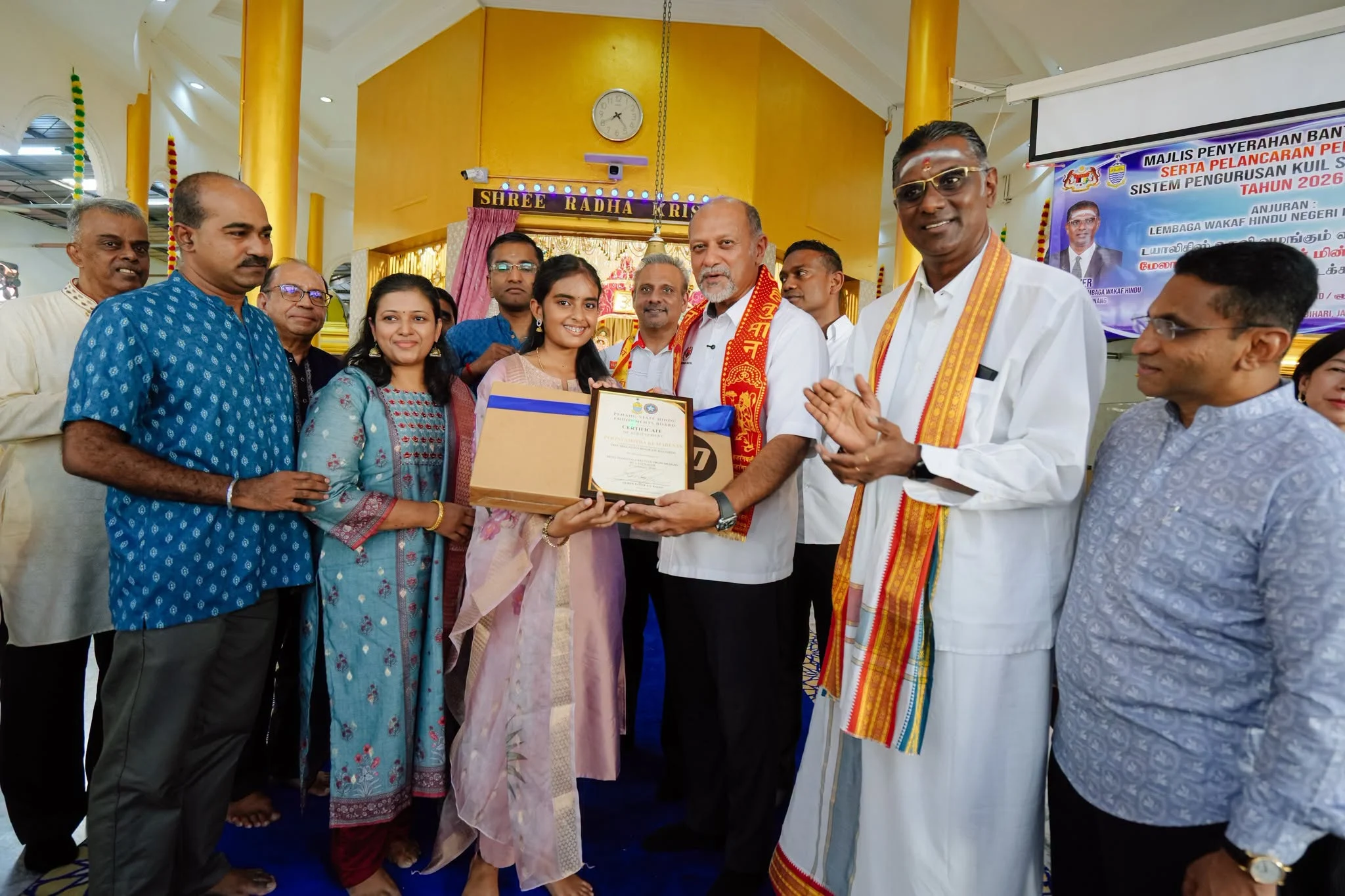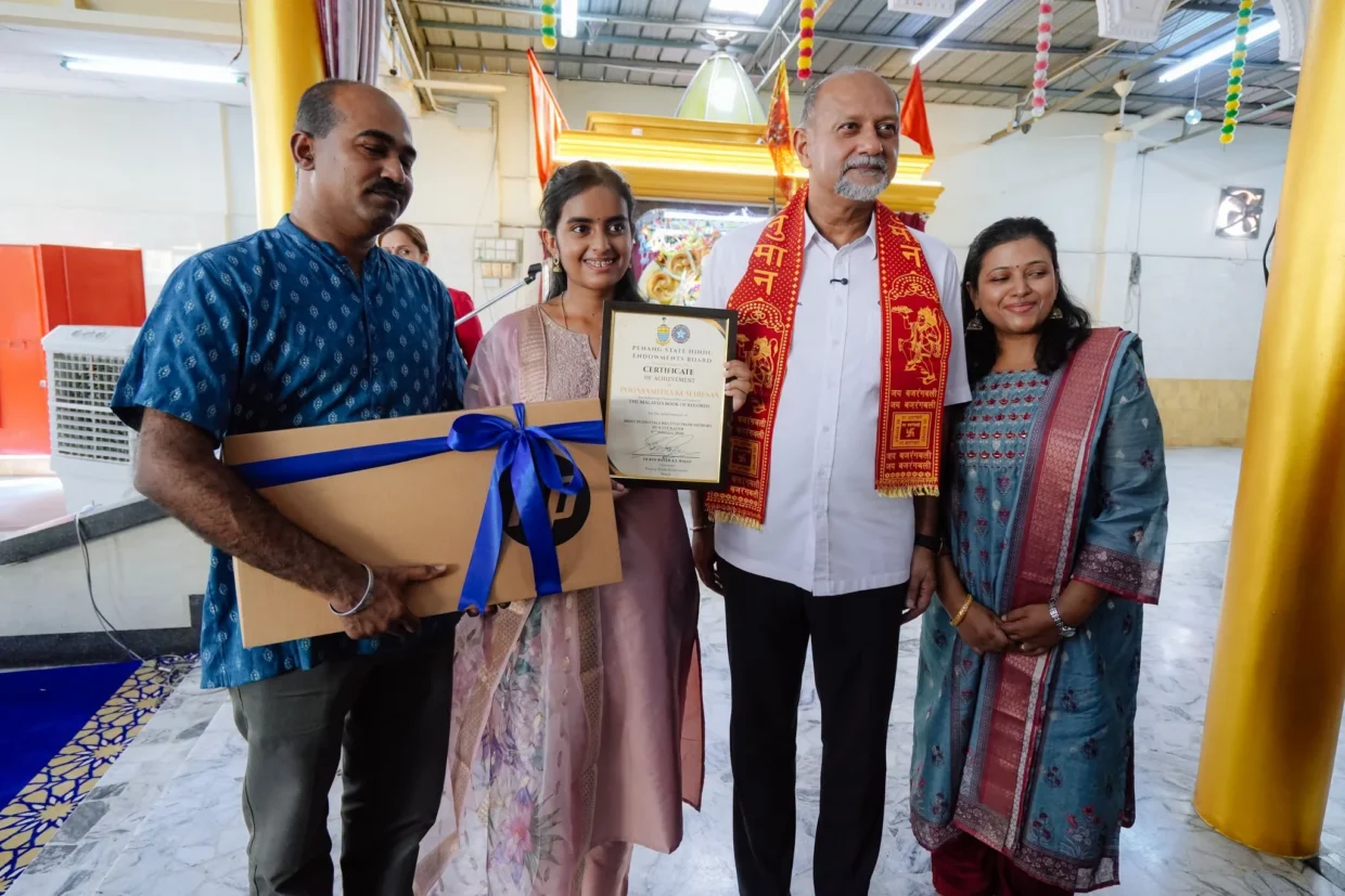 Presented during the launch for Digitalisation of the Management System for temples under the Penang Hindu Endowments Board, she was presented with a certificate and computer in honour of her achievement. This event was officiated by Minister of Digital Malaysia YB Tuan Gobind Singh Deo.