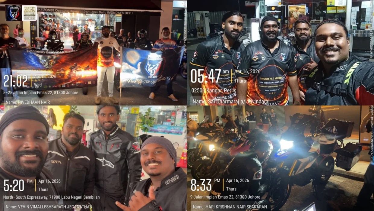 Hari Krishnan Nair A/L Seakaran, Sai Dharmaraj A/L Rivindaraj, Nivedhaan Nair A/L Seakaran and Vevin Vimalleshbarath A/L Jeganathan, and members of Pullingo Dravidar Bikers, were recognised by ASEAN Records for their accomplishment.