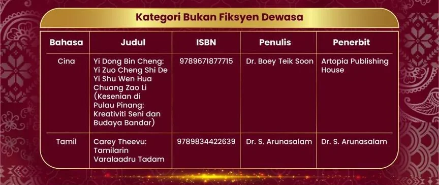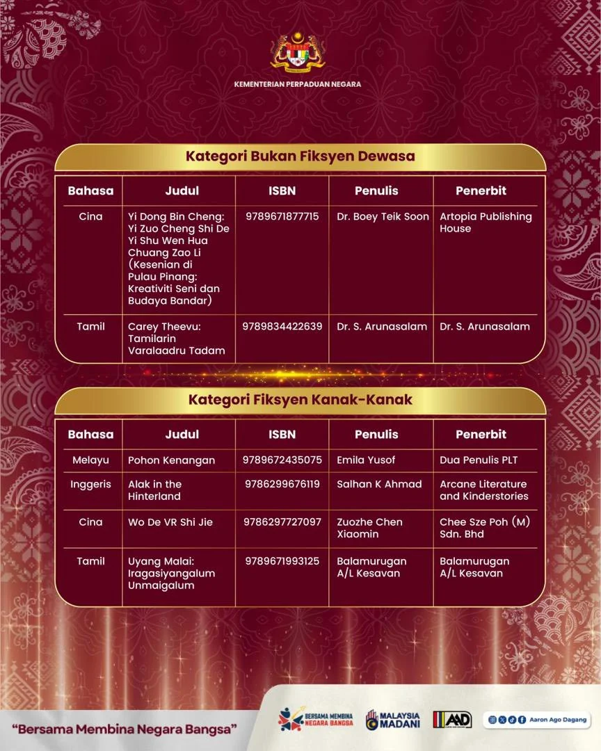 In total, there are 27 award categories being contested to ensure inclusive and comprehensive recognition of the diversity of local works. Among these categories, five awards were given to Indian authors: