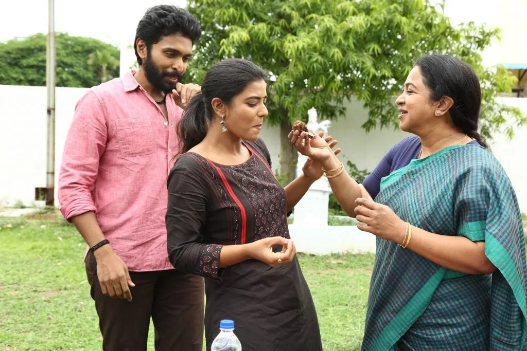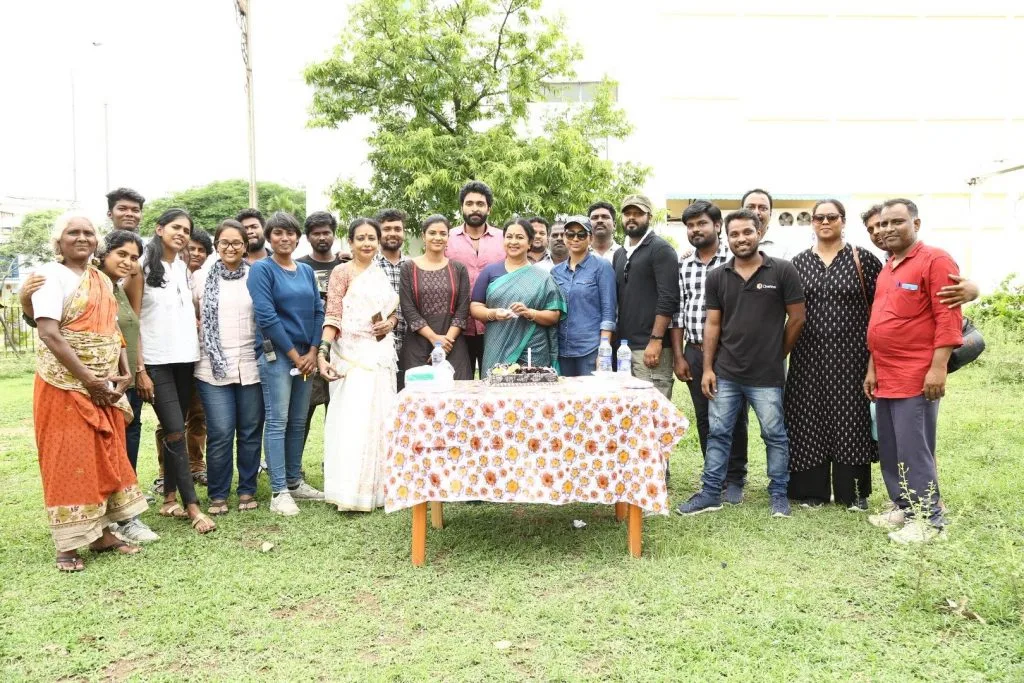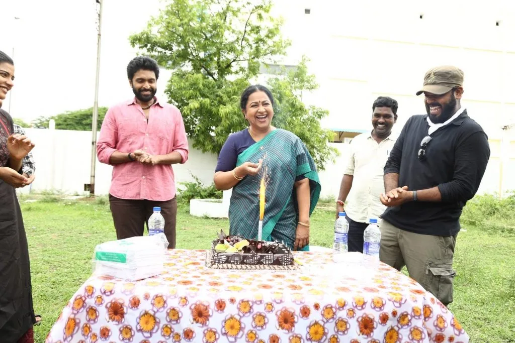 Raadhika Sarathkumar who is an actor, producer and founder of Radaan Mediaworks India Limited had a low-key celebration with cast members and production crew on the sets of Mani Ratnam’s Vaanam Kottatum. She is seen surrounded by her production family as she new the candles of her cake. Under the direction of newcomer Dhanasekharan, the film sees Vikram Prabhu, Aishwarya Rajesh, Radikaa, Sarath Kumar, Shanthnu Bhagyaraj and Madonna Sebastian in the lead.