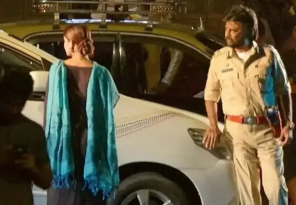 Shooting spot stills of ‘Darbar’ have leaked once again in social media. A picture of Rajinikanth in cop uniform next to a police car conversing with Nayanthara has gone viral.