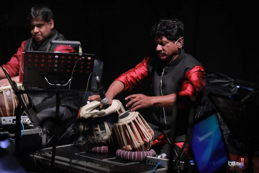 The rest of the band comprised of keyboardists Chinna and Ravishankar, trumpeter Vijay, guitarists Mangaraj and Keith, tabla players Palraj and Sivesh, with Hirik on the drums and Viji on the synth pads.