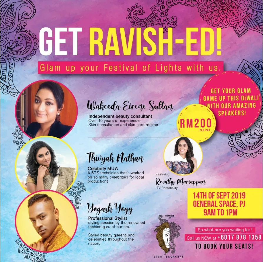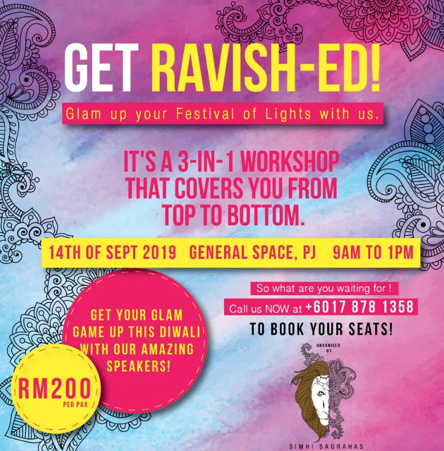 GET RAVISH-ED will guide you through an incredible glow up that you can give yourself in time for Deepavali. The 3-in-1 workshop will be happening on 14 Sept at General Space Petaling Jaya from 9AM to 1PM.