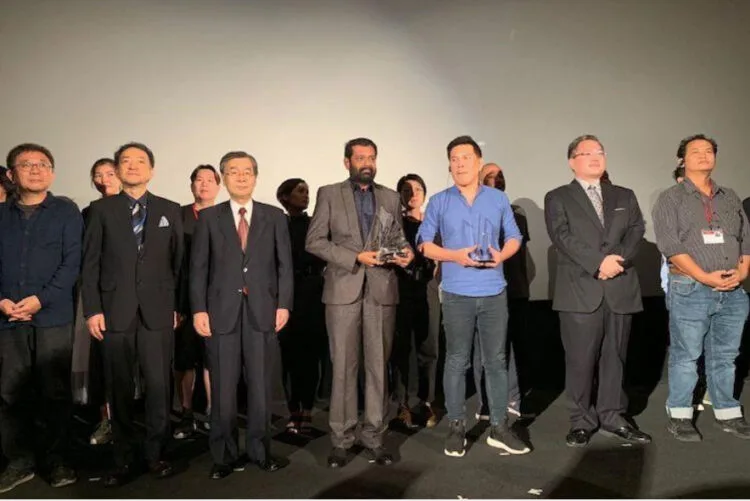 The award was presented by the Festival Director, Hariki Yasuhiro, and Kubota Isao, Chairman of the Film Festival Committee to the film’s director Vasanth.