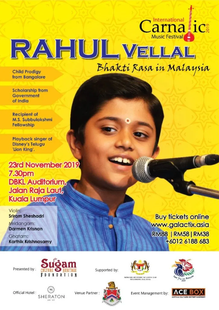 Get a chance to meet 12-year-old child prodigy, Rahul Vellal, who will be singing his carnatic pieces in his angelic voice at the International Carnatic Music Festival in Kuala Lumpur!