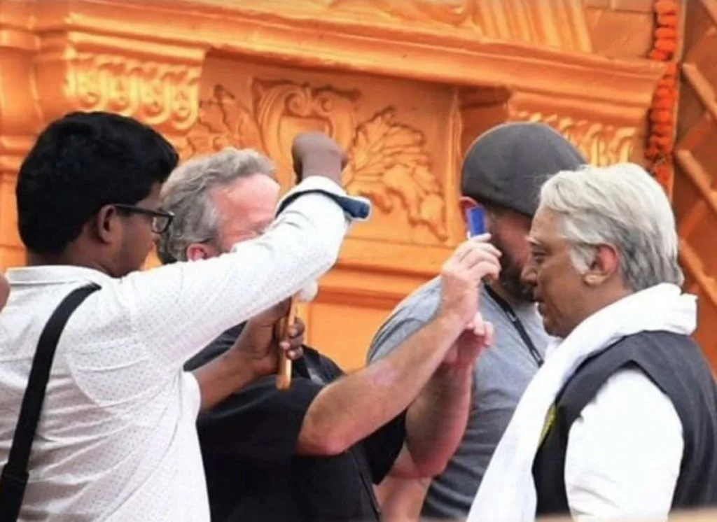 Ulaganayagan Kamal Haasan begun the next schedule of shooting and was seen shooting at Raja Bhoj Setu in Bhopal. The star actor has been shooting as a 90-year-old since yesterday and pictures from the shooting spot have being going viral over the internet.