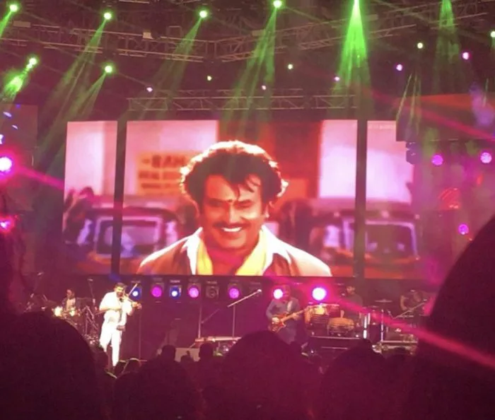 As he began with a song from Hey Ram, a timer was splayed across the screen, with the title of the song, and the next song. The veena legend did an hour long medley of tunes like Chinna Chinna Vannakuyil, Chikku Bukku, Thangame and Raja Raja Chozhan.