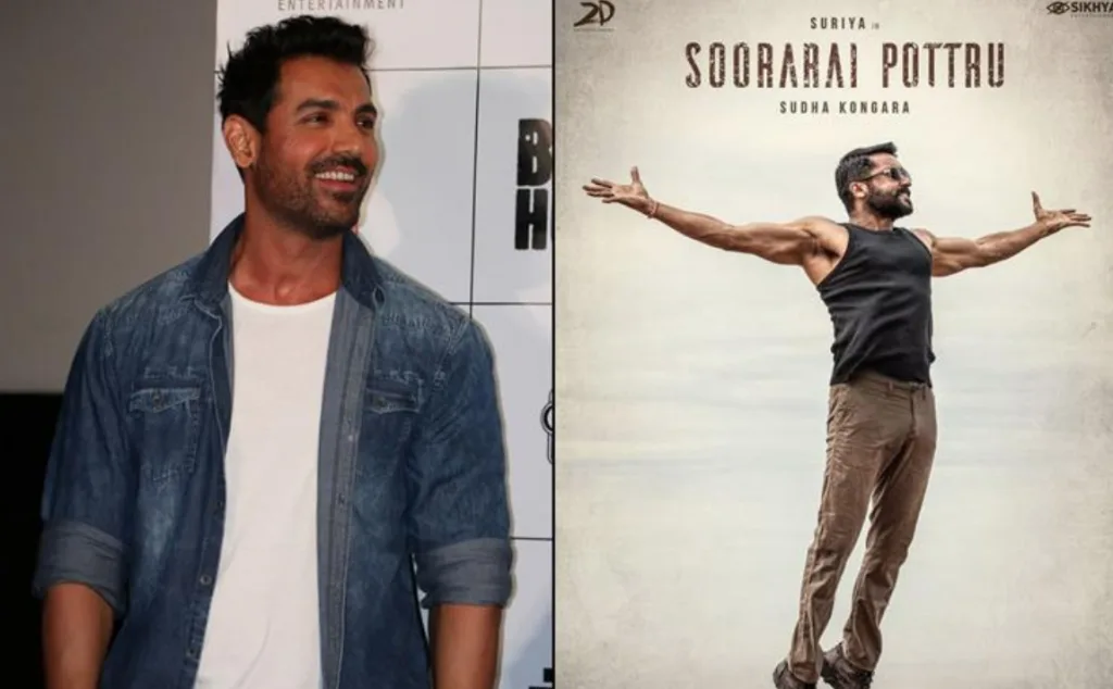Rumour has it that Bollywood star John Abraham, who watched a couple of action sequences from Soorarai Pottru, is keen on remaking the film in Hindi.