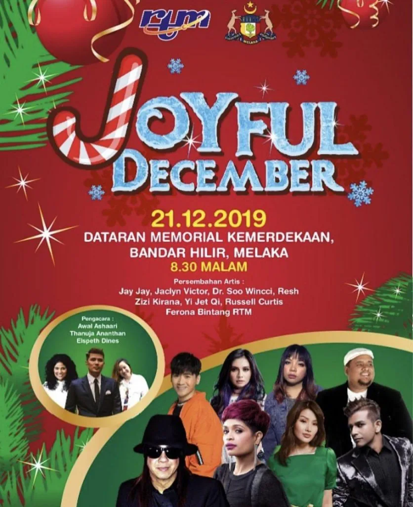 Joyful December will be held in Dataran Memorial Kemerdekaan, Bandar Hilir, Melaka from 8.30 onwards.