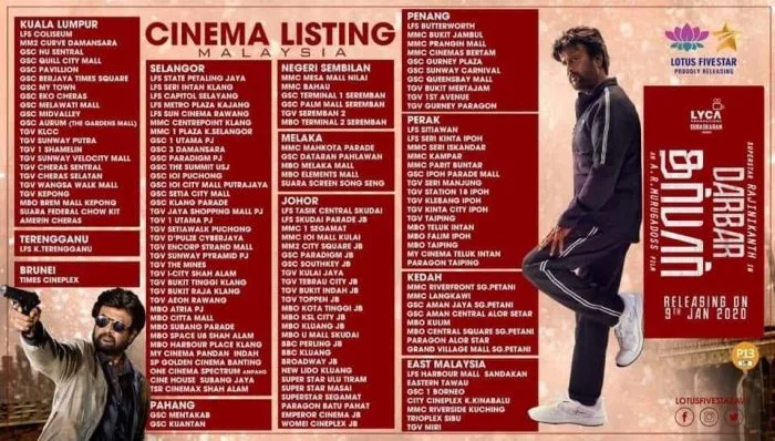 Click here for the full list of Darbar showtimes in Malaysia.
