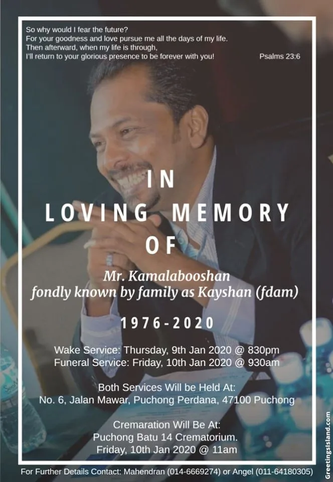 Malaysian film director Kamalabooshan, better known as Kay Shan has passed on at the age of 44 due to health complications.
