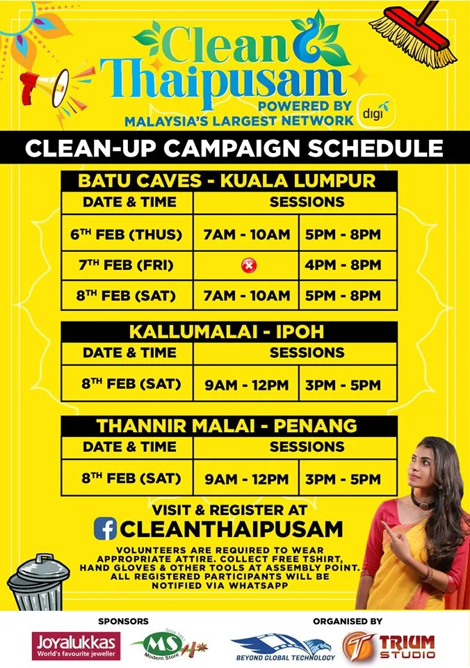 Ultimately, Clean Thaipusam is one of those good causes with no ulterior motives. The team behind it just want to emphasise good hygiene, and rid our community of the littering mentality. The organisers will also provide gloves and other tools required to clean up at the venue. How can you not support a cause this good?