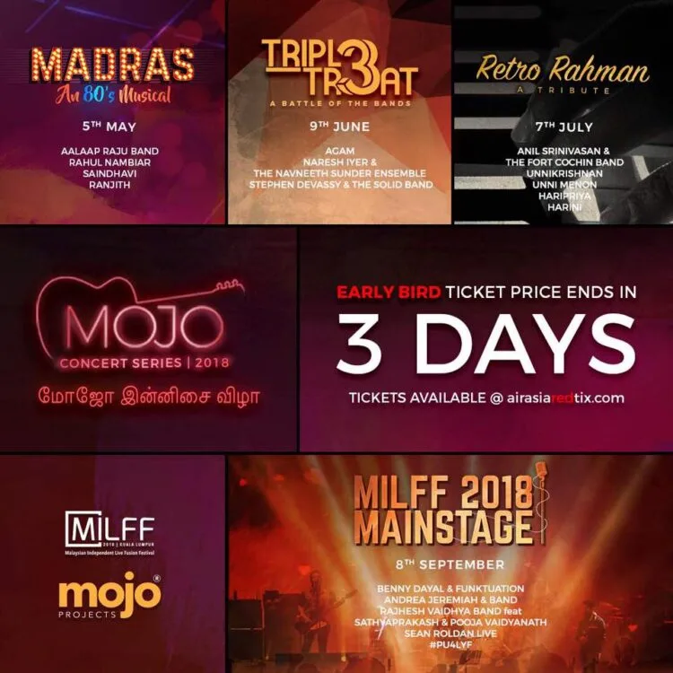 Stay tuned tuned on Varnam.my to learn more about Mojo Concert Series 2018, in-depth details on the shows, and information about where to get your tickets!