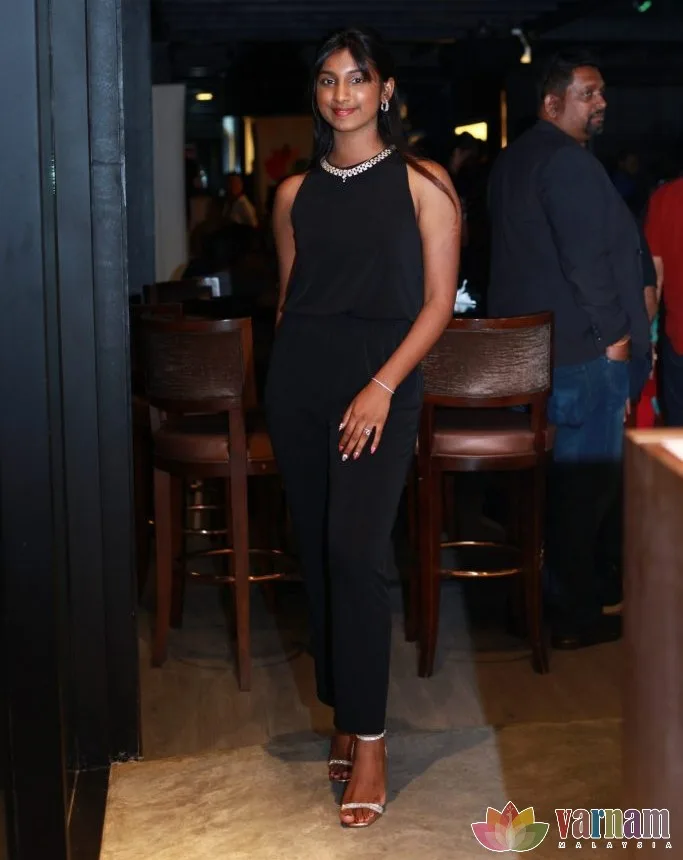 Thiviyah’s outfit was custom made by her mother, makeup artiste and jewelry designer, Devi of Sangeet Devi Studios. She styled her handmade mustard saree that was pleated to perfection with a black cold shoulder ribbed top. The star of her outfit, however, was the handmade statement necklace, also courtesy of her mother. To say that she is Stylo would be an understatement.