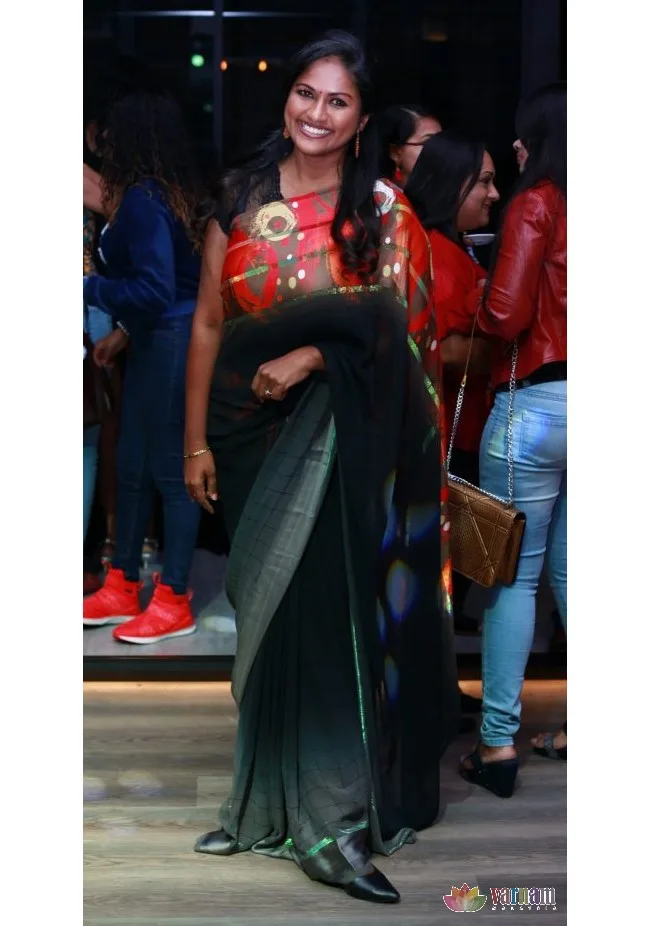 Sushmeetha’s fire on coal saree that night came with two superb accessories, her fun personality and gorgeous smile.