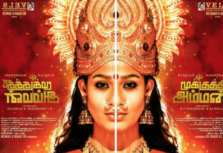 The poster features Nayanthara in a red and green saree with a trishul in her hand and she looks ethereal as Amman. RJ Balaji stated that Mookuthi Amman will be a devotional film, which will come as a ‘treat for the family audience’.