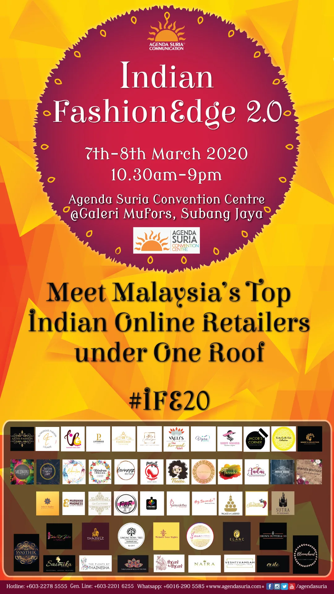 The Indian Fashion Edge is back with its second installment this weekend! Head over to Agenda Suria Convention Centre, Subang Jaya on the 7th and 8th of March 2020 from 10.30 am to 9.00 pm to get to know your favourite online retailer and see their products in the flesh!
