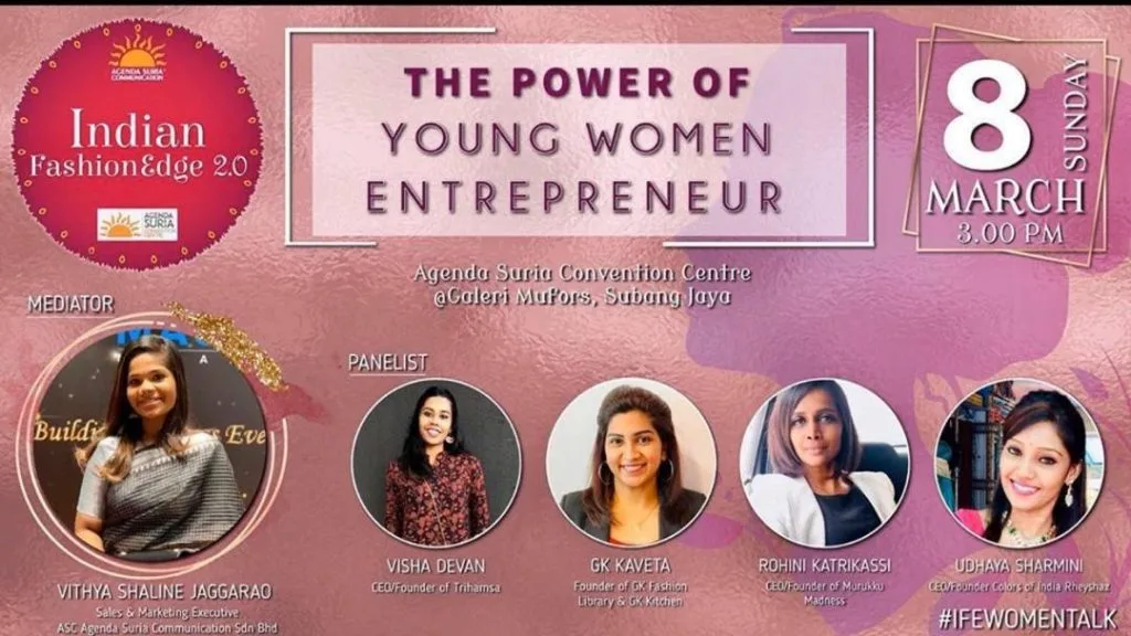 The panelists for this event include Visha Devan, the CEO and founder of Trihamsa, GK Kaveta, the founder of GK Fashion Library and GK Kitchen, Rohini Katrikassi, the founder of Muruku Madness and Udhaya Sharmini, the founder of Colors of India Rheyshaz.