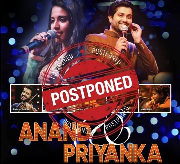 Asia Weaves, the organiser of Anand & Priyanka Up Close & Personal has announced that the concert has been postponed.