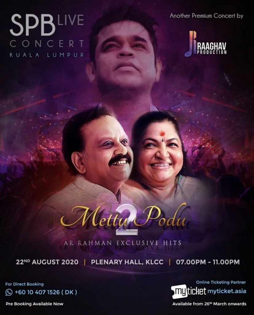 Announced bang smack in the middle of our first MCO, SPB Live Concert Kuala Lumpur – Mettu Podu 2 is scheduled to take place on the 22nd of August 2020. Keeping with the organiser, Raaghav Productions’ trend, the event will take place in KLCC’s Plenary Hall. The event will also feature Drums Sivamani and Suresh Peters.
