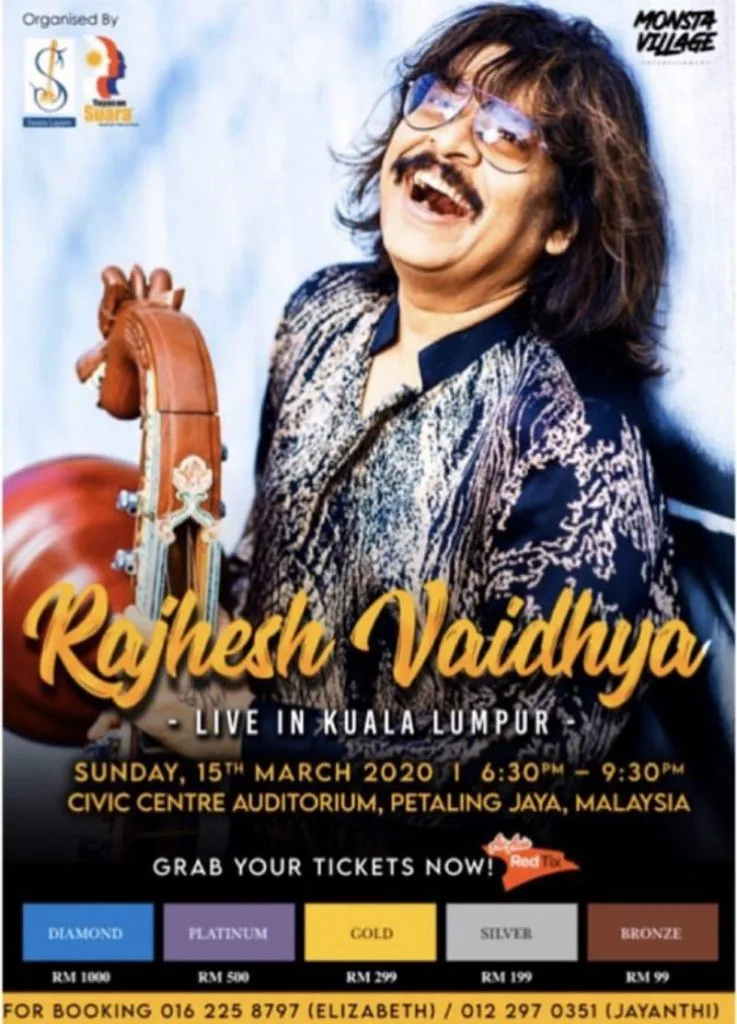 Organised by Petaling Jaya based Carnatic music school, Swara Layam, Rajhesh Vaidhya Live in Kuala Lumpur was scheduled to take place on the 15th of March this year.