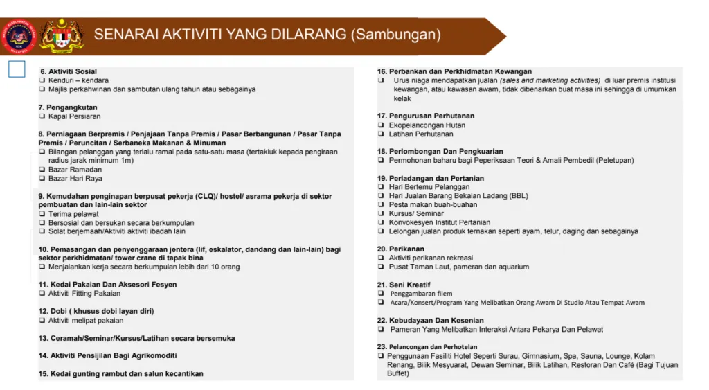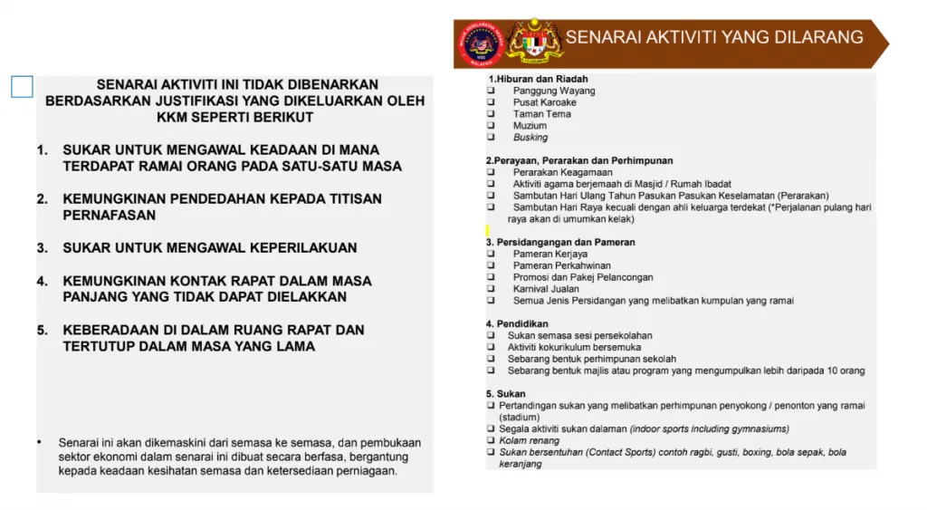 Here are the list of businesses that are NOT allowed to operate during the Conditional MCO (CMCO)
