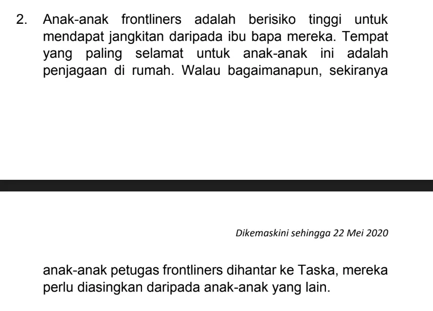 According to Amar, the stipulation of the clause was included in a revised version of the post-movement control order (MCO) guide on Covid-19 prevention relating to taska safety released on Friday.