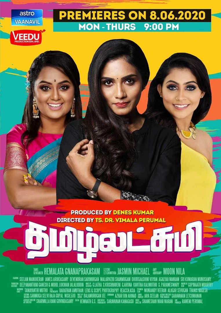 Tamiletchumy which will premiere on the 8th of June at 9pm is a Malaysian Tamil drama series produced and directed by famed husband-wife duo of Denes Kumar and Dr Vimala Perumal. It stars Jasmine Michael, Hemaji and Moon Nila and will be on Vaanavil HD Mondays through Thursdays.