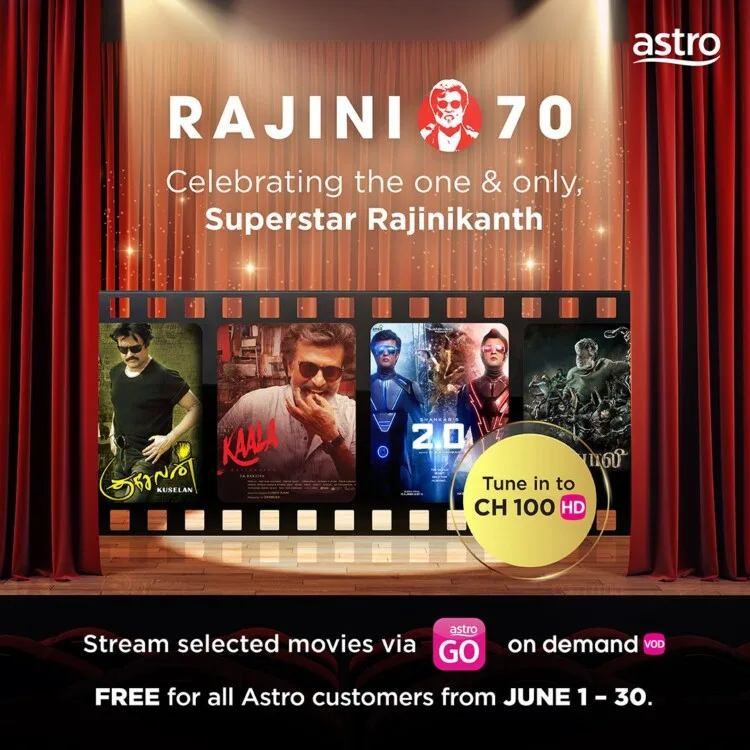 Channel 100 will be the home for Rajini70 HD from the 1st to 30th June 2020, a 70 movie tribute to the legendary superstar in conjunction with his 70th birthday this year. While his birthday is only in December, we’re assuming that this channel tribute has been brought forward to help everyone stay at home to observe the CMO due to COVID-19. Superstar’s movies from his first Apporva Raagangal to his latest Darbar will be made available on this exclusive pop up channel.