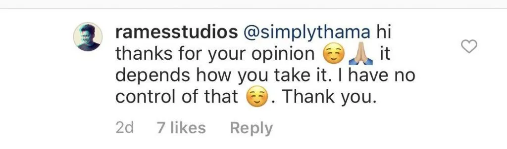 Rames, however, appears unfettered by these messages and chalks it up to a difference in opinion, reinforcing that he has no control over how people perceive his work.