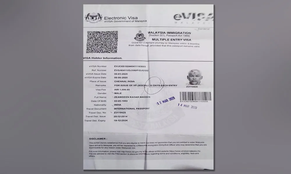 The visa documents of the 67-year-old showed that he entered the country on March 17, a day before the movement control order was imposed. He was due to return to Chennai on March 20th, but instead, he languished in detention for more than a month before he was found unconscious in his cell.