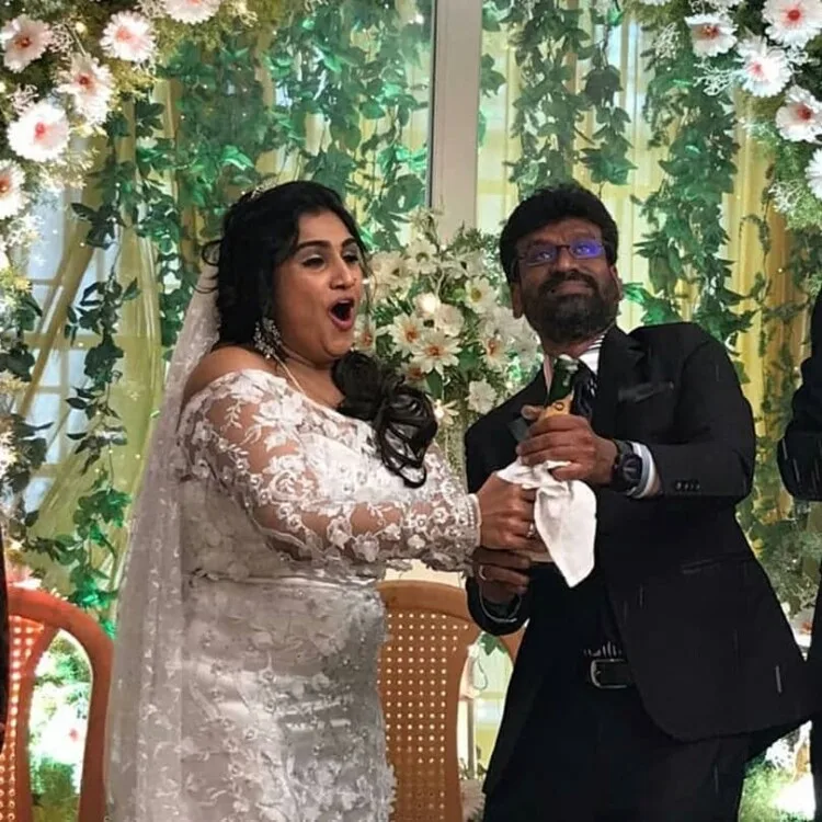 Actor and reality show star Vanitha Vijayakumar tied the knot with visual effect artist Peter Paul last week. The pictures from their intimate event have gone viral.