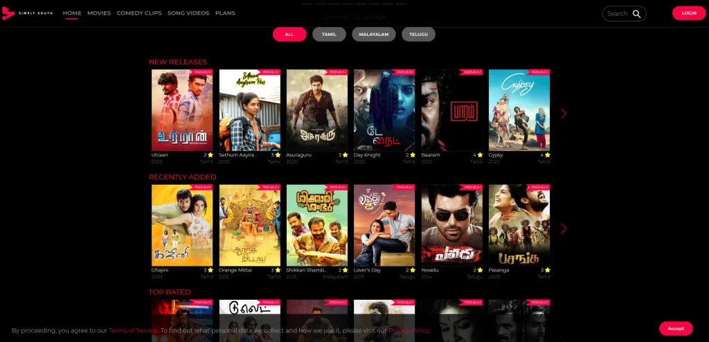 Simply South is a digital entertainment service with the biggest South Indian movie collection ranging from over 1000 + Tamil, Telugu, and Malayalam videos to select from.