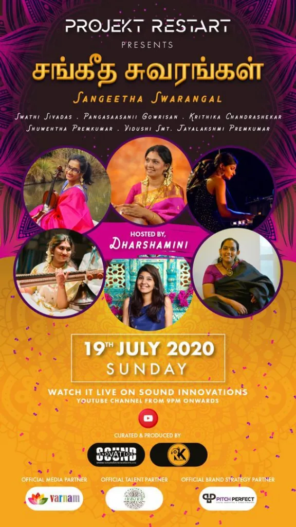 Melophiles, block your date and time and be ready to be wowed by the mellifluous tunes of Carnatic Music with a mix of Carnatic cinema songs this Sunday, 19th July 2020 with ProjeKt Restart.