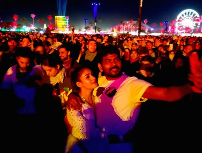 Vignesh Shivan was more than happy to share a photo of himself and his beautiful fiancé on social media, with Nayanthara locked in his arms at the music festival.