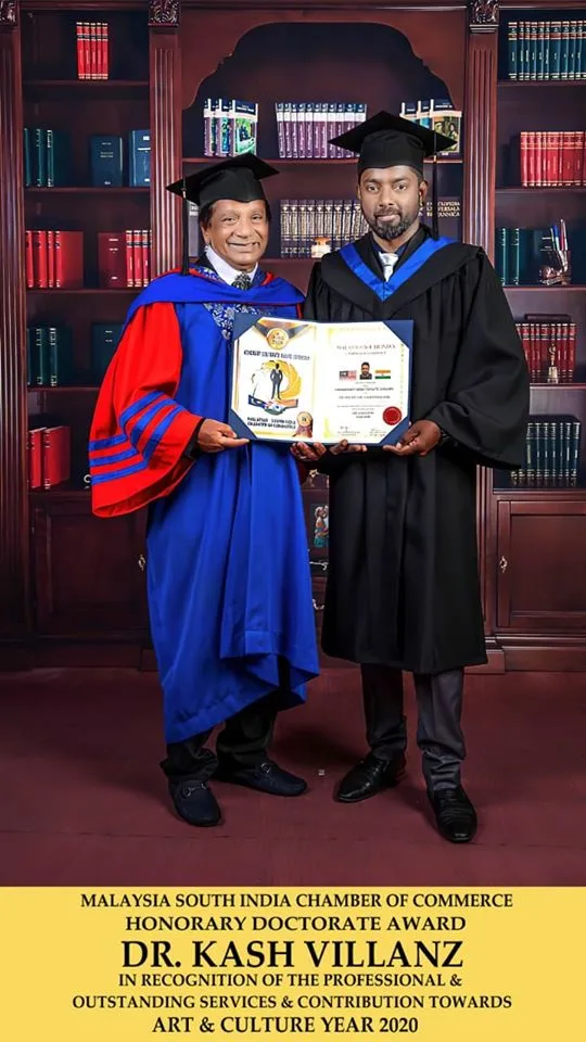 Kash Villanz a member from the Villanz rapping group happens to be one of the leading rappers in the Tamil music industry in Malaysia. The man that has received multiple awards for his rapping skills and catchy songs for Best Hip Song and Best Song Award has now been awarded with a Doctorate for his influence in arts and culture by the Malaysia South India Chamber of Commerce.