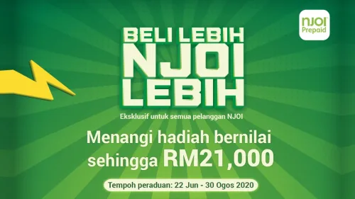 In order to qualify for the Beli Lebih, NJOI Lebih competition, customers would have to splurge a minimum of RM100 on NJOI prepaid channels or packages during the contest period.