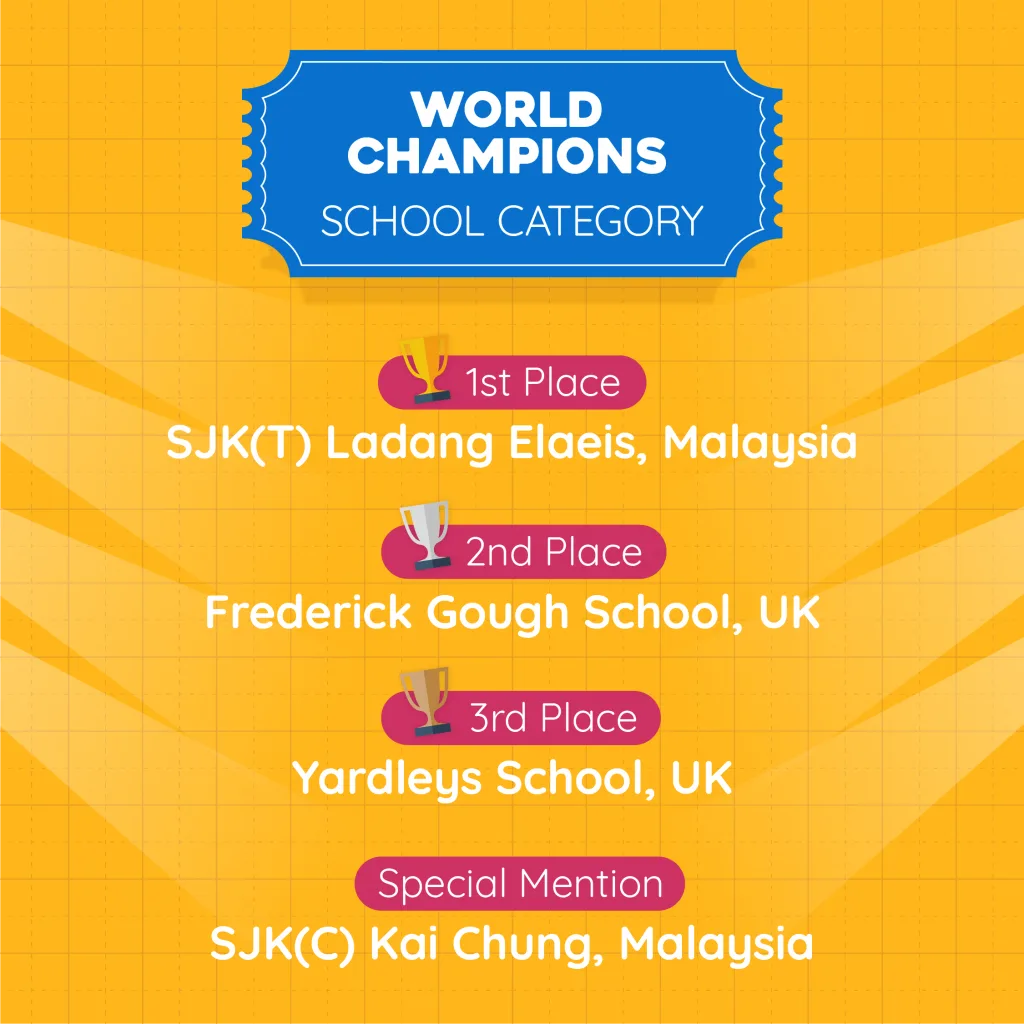 The winner of the international competition with over 3000 schools worldwide is SJK (T) Ladang Elaeis.